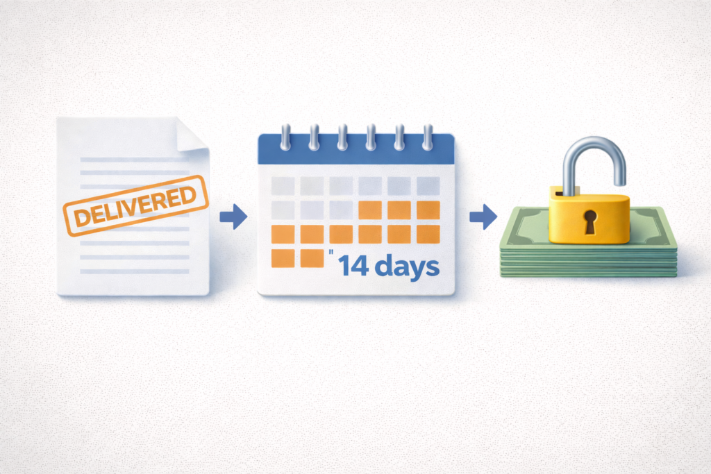 納品後すぐに出金できるわけではなく、保留期間があります。