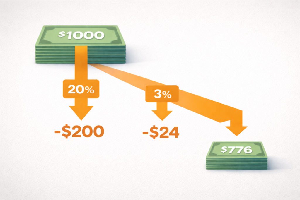 プラットフォーム手数料に加えて出金コストが発生します。