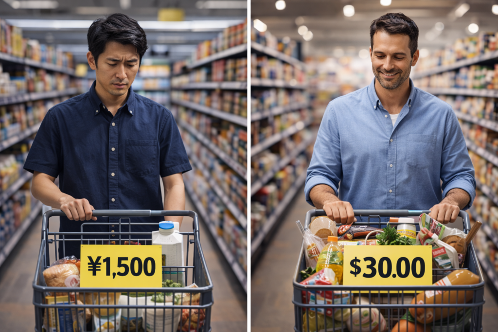 例えば、日本とアメリカの給与水準を比べてみます。